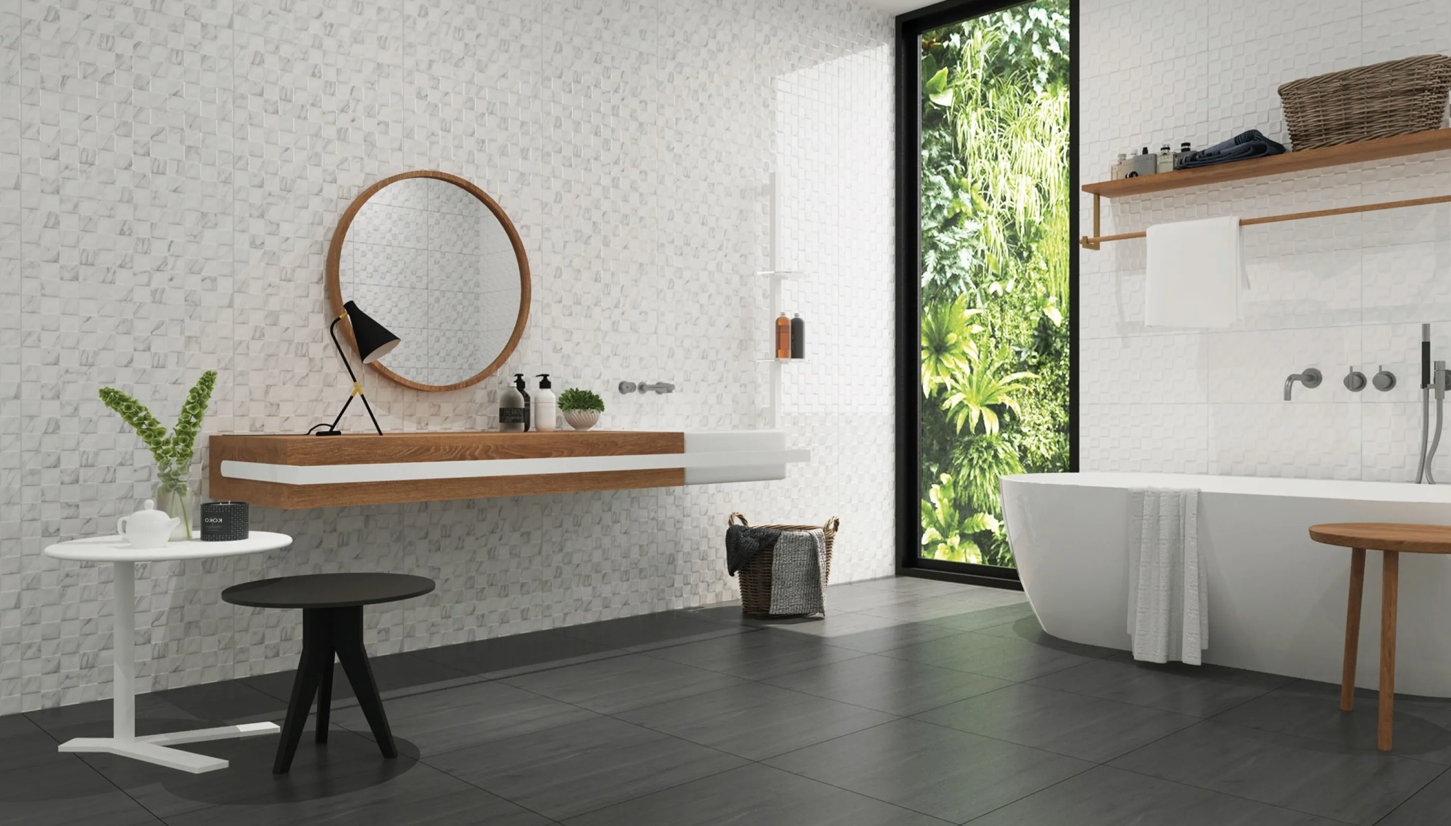 Toledo tiles feature a subtle geometric relief that adds quiet dimension to surfaces without overwhelming the space. Their clean white tone enhances light and openness, making Toledo an ideal choice for interiors that seek refined texture, balance, and understated elegance.